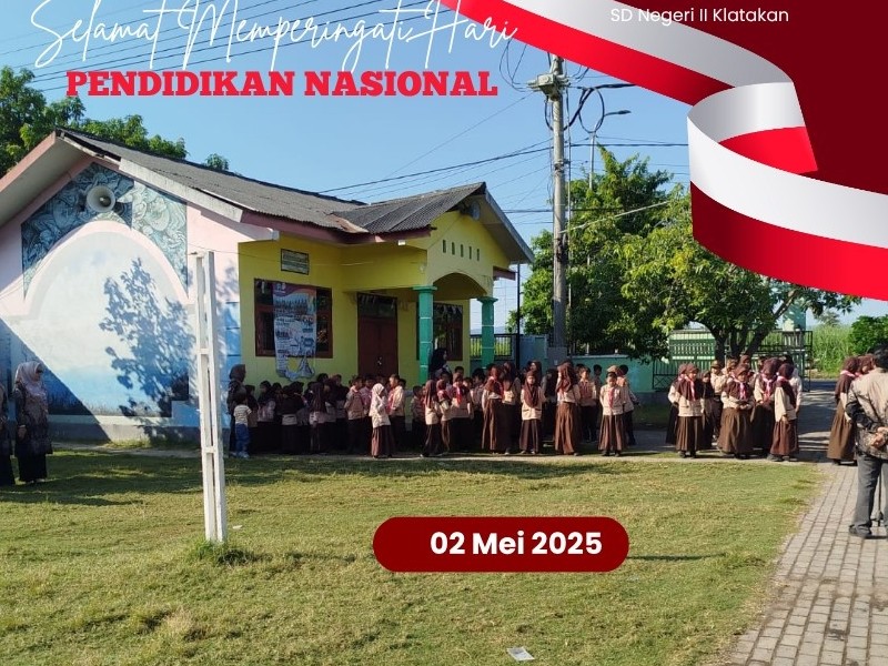 Peringatan Hardiknas di SD Negeri II Klatakan menekankan pentingnya kolaborasi antara guru, siswa, dan orang tua dalam mewujudkan pendidikan yang berkualitas dan inklusif. Semangat ini sejalan dengan prinsip Ki Hadjar Dewantara: "Ing Ngarso Sung Tulodo, Ing Madyo Mangun Karso, Tut Wuri Handayani", yang mengajarkan pentingnya teladan, bimbingan, dan dorongan dalam proses pendidikan. Acara dimulai dengan upacara bendera yang diikuti oleh seluruh siswa sekolah. Para peserta upacara mengikuti kegiatan upacara dengan penuh antusias. Bapak Bayu Setiawan, S.Pd selaku Pembina Upacara memberikan Pesan bagaimana penerapan tentang semangat belajar seperti perjuangan Bapak Pendidikan nasional Indonesia Ki hajar Dewantara.